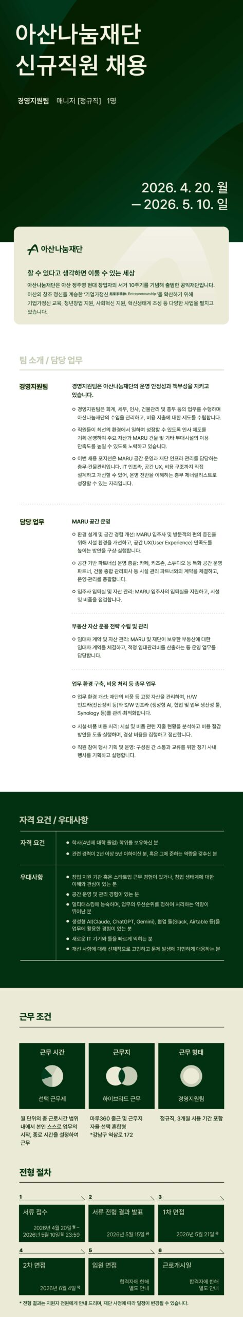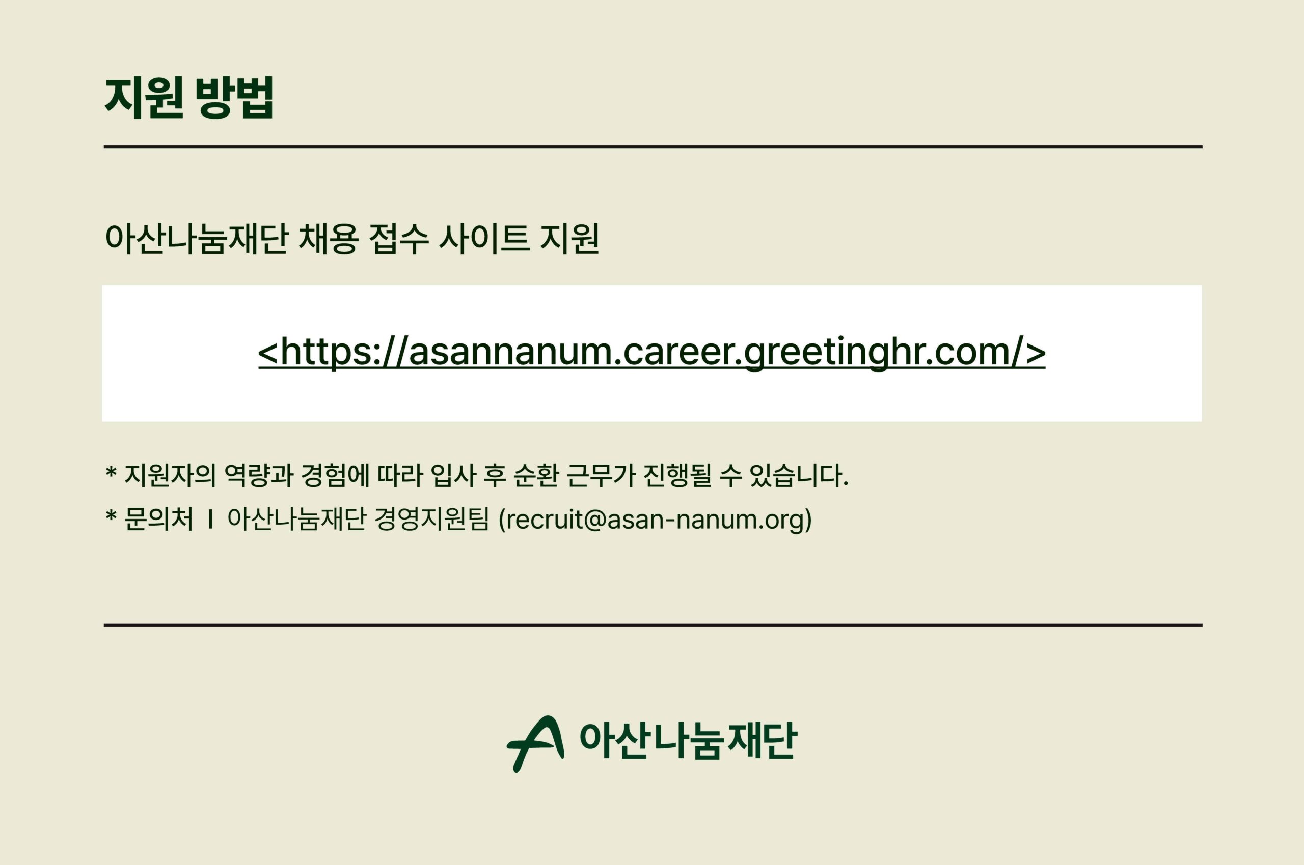 ※문의처: 아산나눔재단 경영지원팀 (recruit@asan-nanum.org)